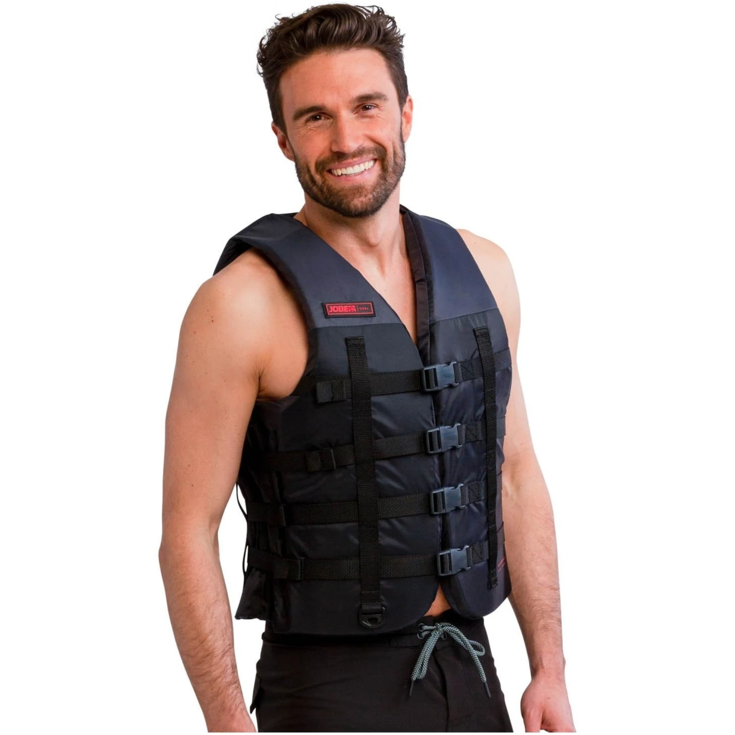 The Jobe Dual unisex vest is a 50N ISO certified buoyancy aid. The vest is made out of strong and lightweight nylon on the outside and EPE foam on the inside. The soft nylon sides and the adjustable webbing straps make the vest suitable to almost all body sizes and shapes. The D-rings make sure you can safely use this vest while coasting on your boat or PWC. Ripstop nylon fabric for a luxurious feel.