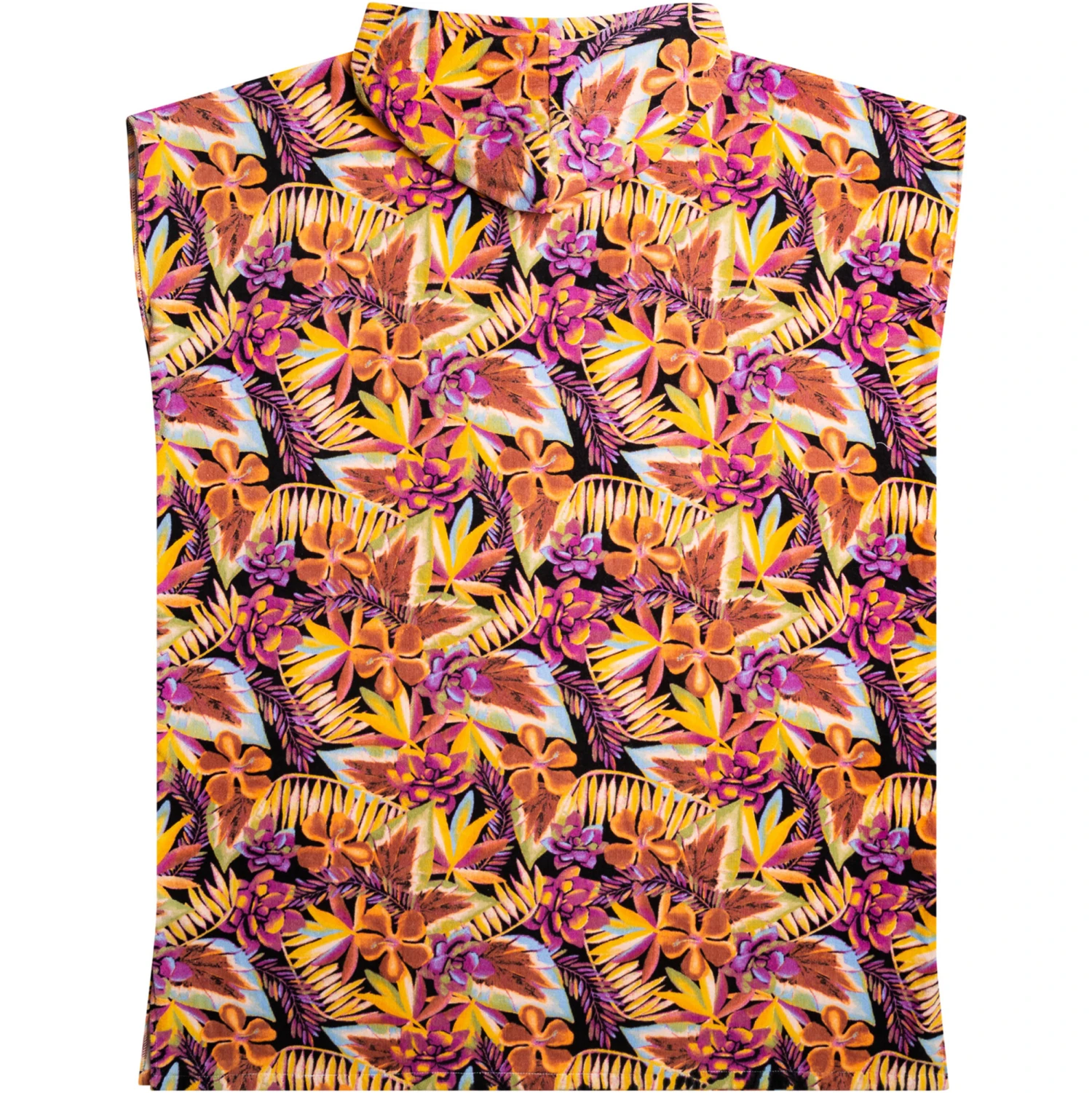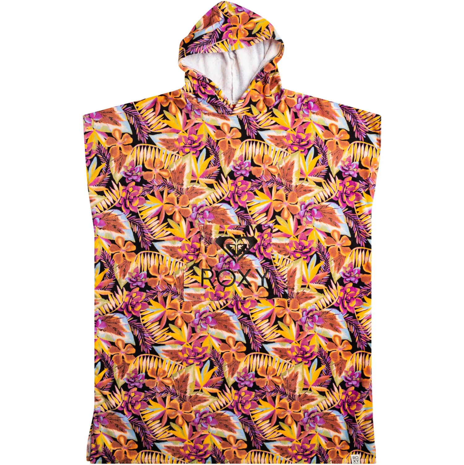 Warm up post-surf in this cozy poncho towel made of printed terry cotton. Complete with a kangaroo pouch pocket, plus ROXY artwork and embroidery.